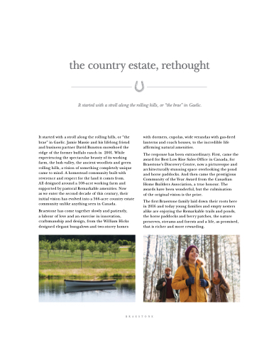 as we enter the second decade of this century, their initial vision has evolved into a 566-acre country estate community unlike anything seen in Canada.